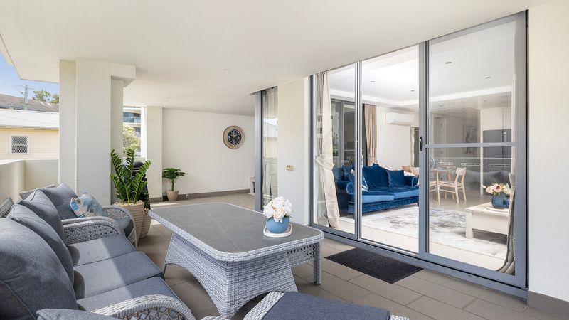 The open-plan living area is filled with natural light and features elegant furnishings that flow seamlessly to an expansive outdoor balcony. Dine alfresco, fire up the BBQ, and take in the lovely views overlooking the marina.