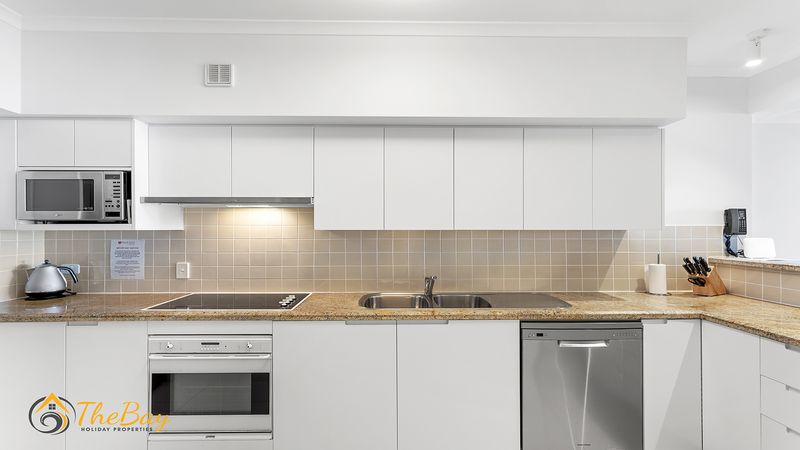 The master bedroom features a Queen Size Bed and Ensuite and the second bedroom provides two King Single Beds. Linen is provided and beds are made prior to arrival. Ducted air conditioning, Free Wi-Fi, a fully stocked kitchen and undercover security parking for one car ensures everything is at your fingertips for the perfect holiday.