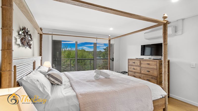 4 Executive Apartment one street back and a leisurely 2 min stroll from Shoal Bay Beach. Walk to multiple cafes and restaurants, Shoal Bay Country Club and shop at the local boutiques. There is also a well stocked IGA supermarket so you can just leave your car parked until you are ready to go home.