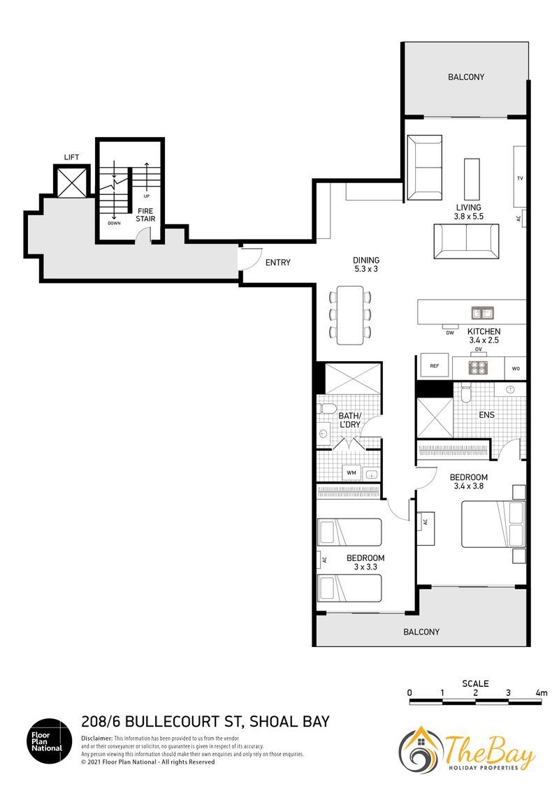 Two bedroom, two bathroom air conditioned apartment. Bedroom 1 features a Queen Size Bed and Bedroom 2 features 2 single beds.