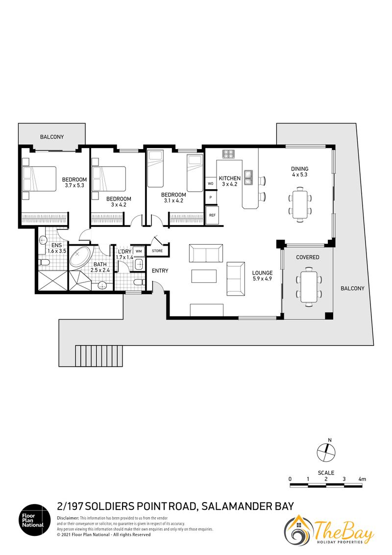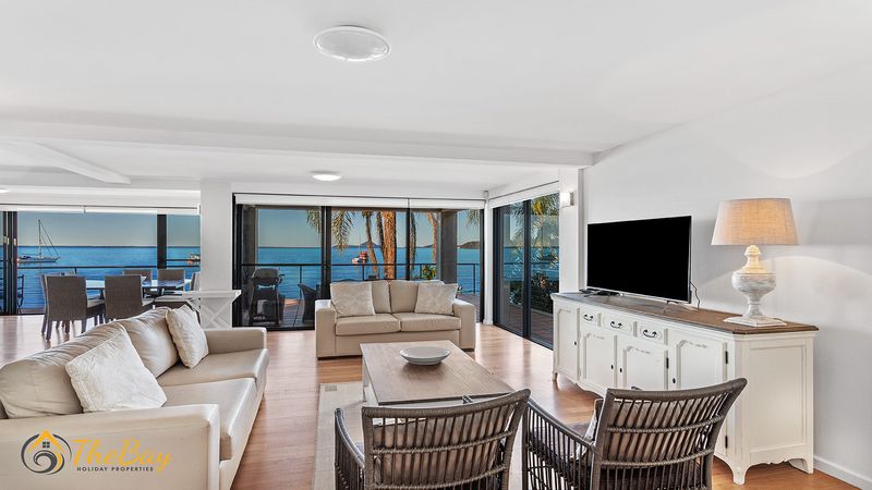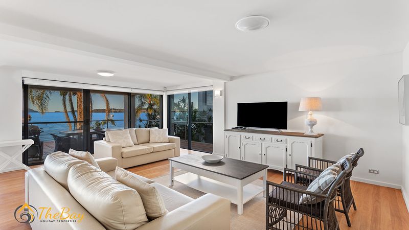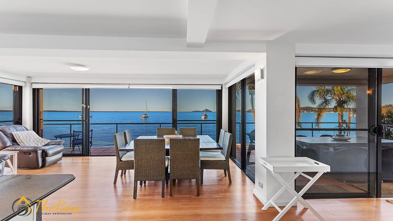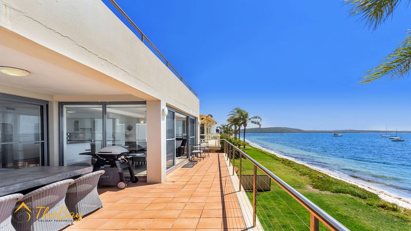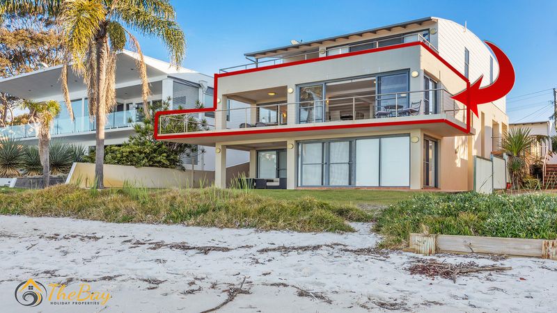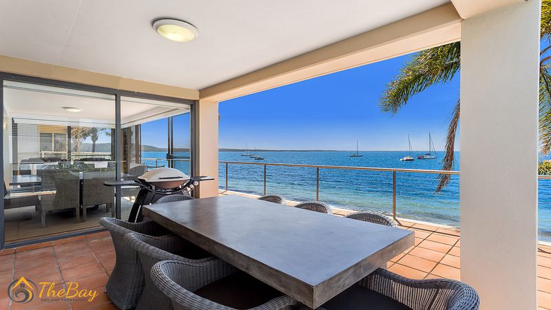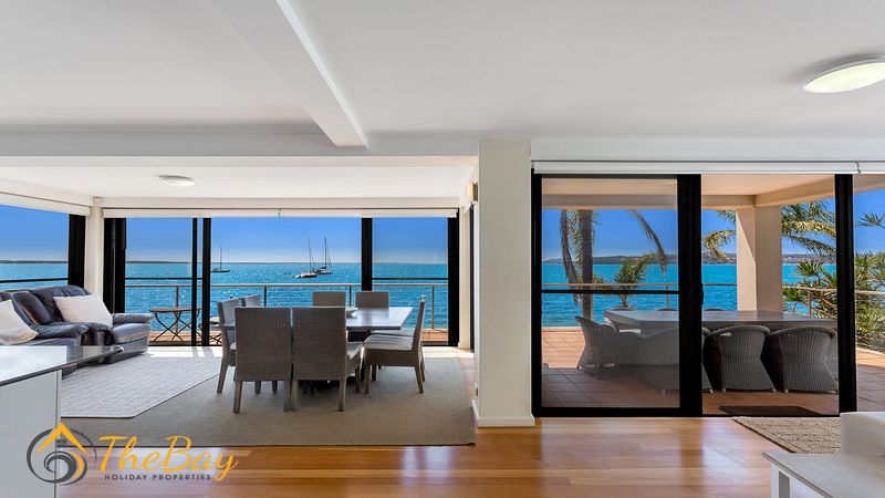 This gorgeous apartment is situated right on Wanda Beach and delivers amazing sunrises. This property is definitely for those who are looking for a quiet, relaxing holiday. Located at the most western tip of the Tomaree Peninsula, 2/197 Soldiers Point Road is almost entirely surrounded by the water making it a popular location for fishing and boating. Soldiers Point marina (2.4km away) offers two restaurants plus cafes. The exclusive Rick Stein Restaurant at Bannisters Resort is just 800m away and opposite Bannisters is the Soldiers Point Bowling club which offers affordable meals for the family and a play area for the little kids. The apartment itself is stylishly appointed on the middle floor (street level) with 3 bedrooms and absolute beachfront. Nestled amongst million dollar waterfronts this beautiful executive-style home provides guests with easy indoor / outdoor living and a relaxed atmosphere. The open plan living room offers ducted air conditioning, floor boards, flat screen TV, dining suite and floor to ceiling windows to take in the breathtaking views. The main bedroom features a queen size bed, bedroom 2 also has a queen size bed and the third bedroom features two single beds. NOTE: This property will not accept school leaver or party bookings.